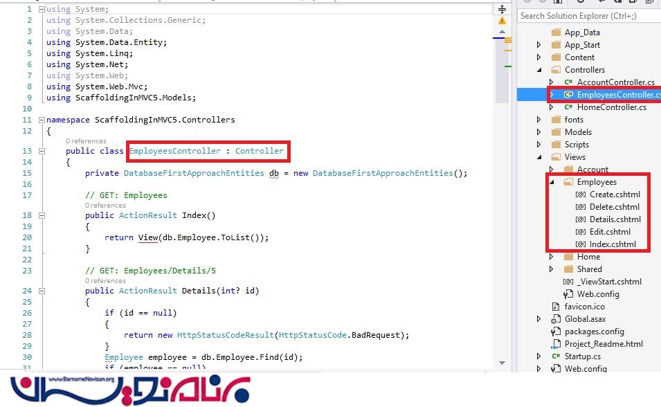 اگر به solution explorer نگاه کنید، خواهید دید که عملیات CRUD و کنترلر و view های مربوط آن به صورت خودکار تولید شده است.