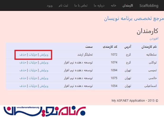 و به همین صورت ویرایش و جزئیات و حذف را مشاهده خواهید کرد.