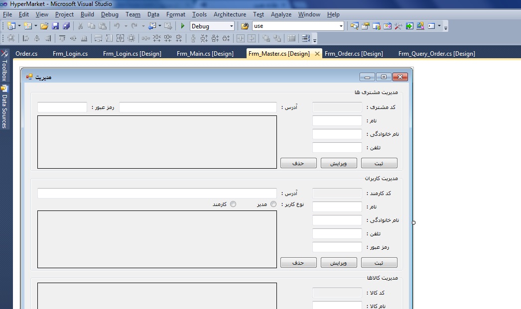 ابتدا Database پروژه را به نام HyperMarket بازگردانی (restore) کنید ، سپس پروژه را اجرا کنید. اطلاعات مربوط به ورود کاربران در دیتابیس موجود است.