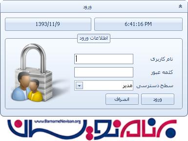 نکته مهم : هنگام اجرا، جهت ورود به نرم افزار از نام کاربری ali و کلمه عبور 1 استفاده نمایید