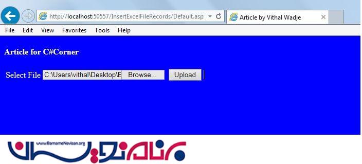 دوشنبه 13 بهمن 1393دراین مقاله میخواهیم کاربر یک فایل excel حاوی اطلاعات را آپلود کند و داده های آن در جدول در پایگاه داده ذخیره شود