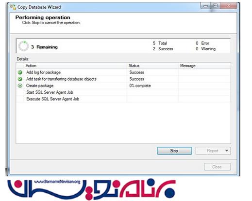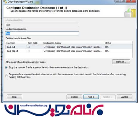 هنگامی روی Copy Databas کلیک میکنیم با صفحه ای مانند زیر روبه رو میشویم.