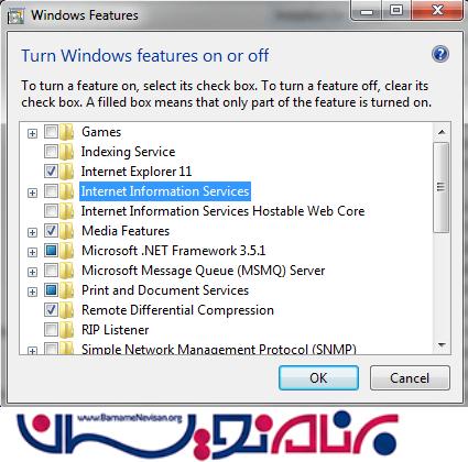مرحله هفتم :وقتی CheckBox رافعال کنید و Ok را بزنید IIS شما فعال خواهد شد.