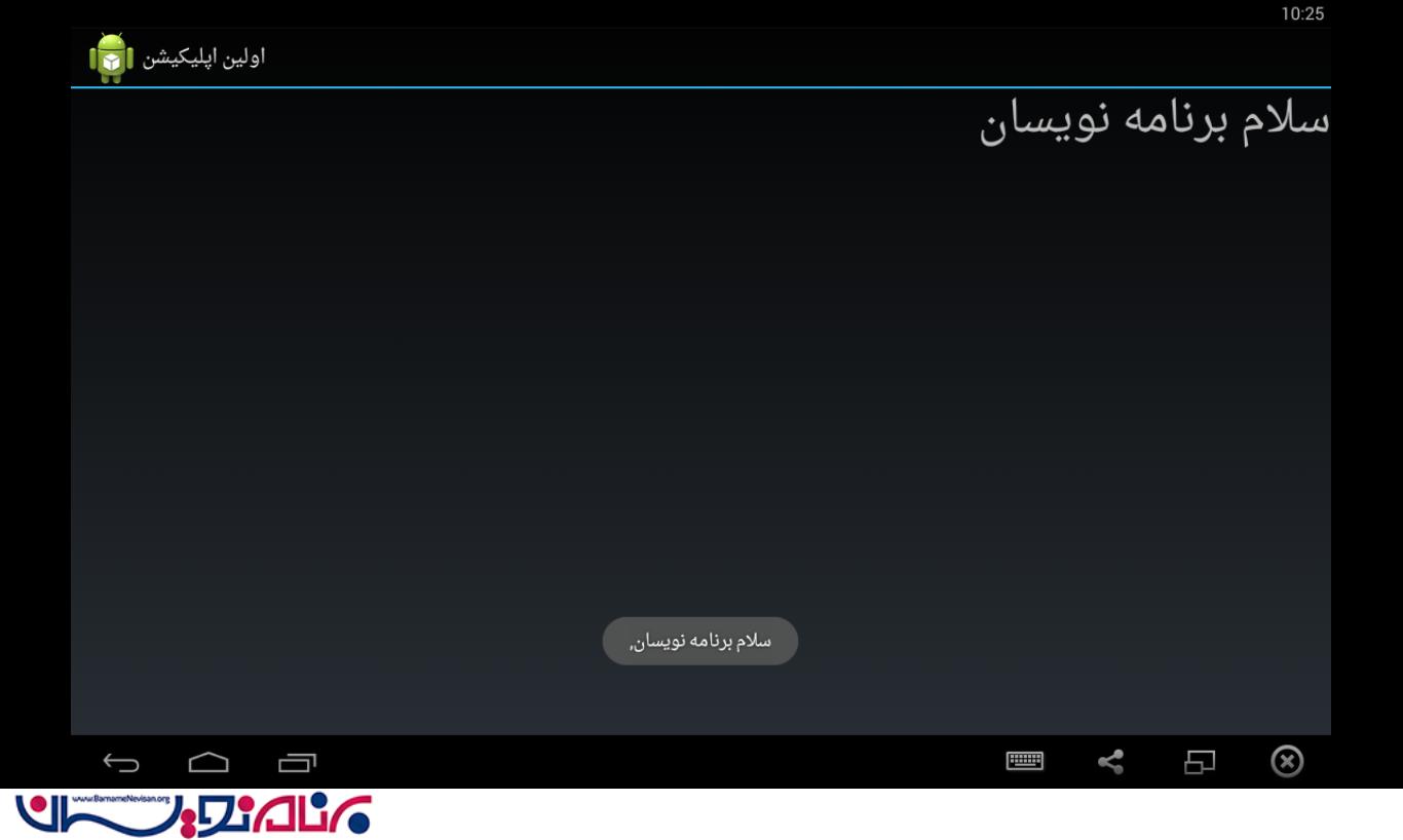 Toast.makeText(MainActivity.this, "پیغام در استاتوس نمایش داده شد", Toast.LENGTH_LONG).show(); به محض اجرا شدن یک پیغام به صورت ثانیه ای نمایش داده می شود.