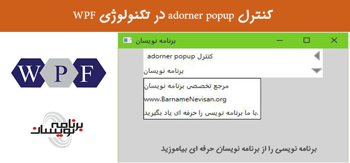 شنبه 1 آبان 1395در این مقاله می خواهیم نحوه ی ایجاد یک کنترل را بیاموزیم که ظاهر و کارایی آن مشابه popup است و در لایه ی adorner قرار می گیرد. این کنترل می تواند زیباسازی نیز شود.