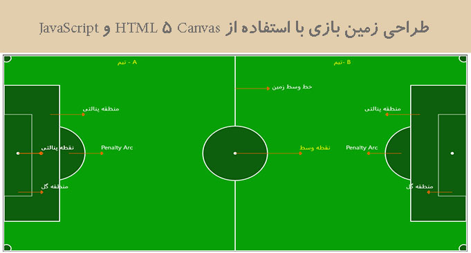 چهارشنبه 4 مرداد 1396در این مقاله، ما قصد رسم یک طرح گرافیکی زمین بازی فوتبال با بررسی کدهای آن با استفاده از HTML 5 Canvas و JavaScript آموزش بدهیم.