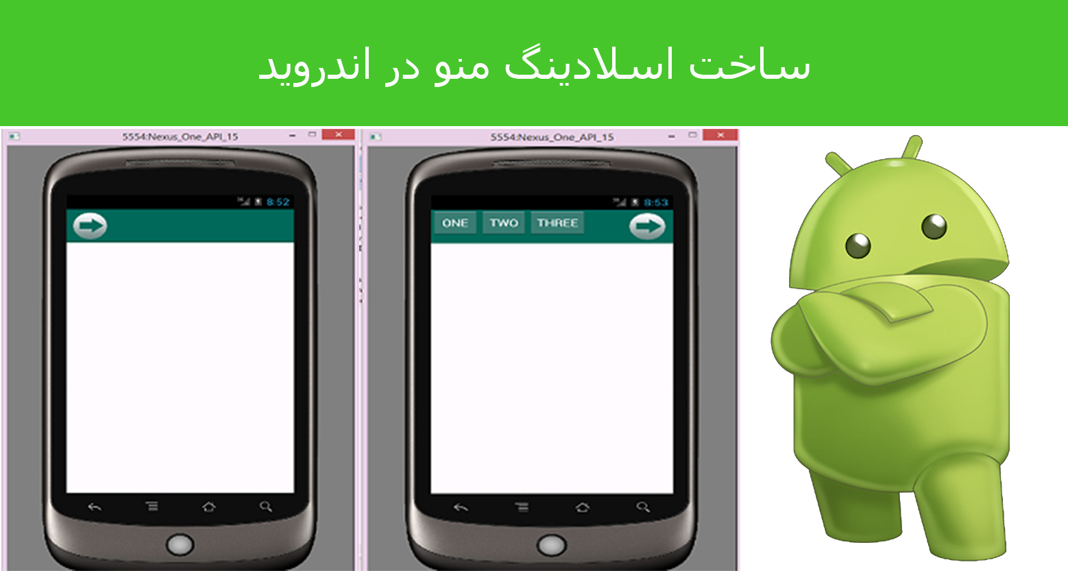 سه شنبه 25 مهر 1396در این مقاله قصد داریم بر روی نوار ابزار خودمان یک اسلاید شو قرار دهیم که با زدن دکمه منوی ما باز می شود و با زدن همان دکمه منوی ما بسته خواهد شد .این نمونه کد برای اپلیکیشن هایی که می خواهید دکمه ها مشخص نباشد استفاده شود.