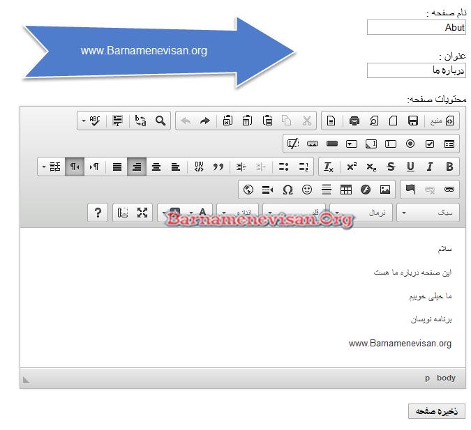 در این صفحه از CkEditor استفاده شده است و اگر آشنایی با طرز استفاده از این ادیتور زیبا و فارسی و کامل رو ندارید به مقاله زیر مراجعه کنید