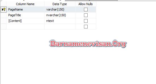 یک دیتابیس با نام DynamicPageDB میسازیم و سپس یک جدول با نام Pages ایجاد میکنیم