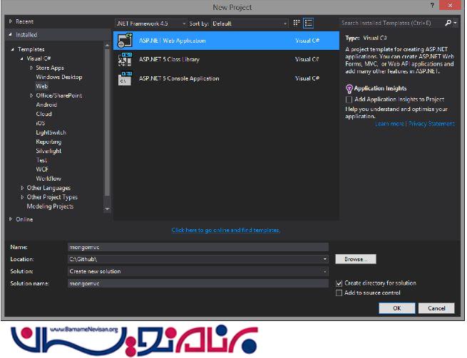 بسته به محیط خود ( windows or osx ) شما میتوانید انتخاب کنید که چگونه یک پروژه Asp.Net را ایجاد کنید.