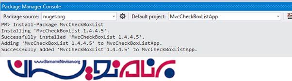 سپس طبق شکل زیر دستور را وارد کنید تا pakage بر روی سیستم شما نصب و به پروژه استفاده شود: