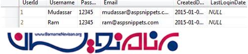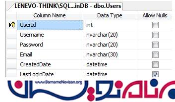 یک پایگاه داده به نام LoginDB و یک جدول به نام Users با فیلد های زیر میسازیم: