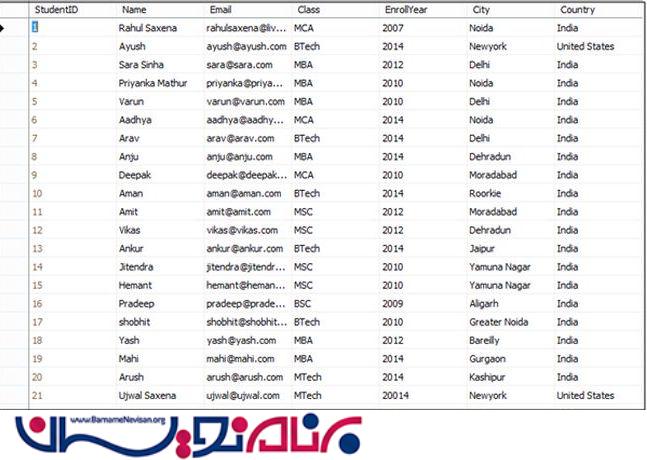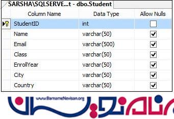 در پایگاه داده خود یک جدول به نام Student با فیلد های زیر میسازیم: