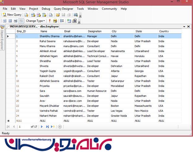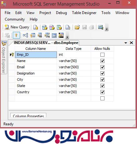 ابتدا در پایگاه داده خود یک جدول به شکل زیر میسازیم: