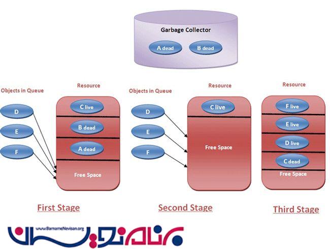 در تصویر زیر شما سه مرحله میبینید .در اولی اشیایی با نام های "A" و "B" و "C" در نظر گرفته شده اند که واضح است که "A" و "B" مرده اند درحالی که " "C زنده است. در طرف دیگر شئ های جدیدمان "D" و ""E و""F در یک صف برای استفاده از منابع هستند. فرض کنید اگر ابزاری برای متوقف کردن و آزاد سازی حافظه یا منابع وجود نداشته باشد آنگاه سایر اشیای ما باید مدت های مدیدی در صف بمانند و این سرعت اجرا را بسیار پایین می آورد. جمع کننده ی زباله ها اینجاست تا به ما کمک کند و "A" و "B" را جمع آوری میکند و آن ها را از منابع میگیرد زیرا آنها قدیمی هستند و برنامه ای از آنها تا مدت طولانی استفاده نمیکند. پس در مرحله ی دوم ما فضای خالی بیشتری داریم و "D" و "E" و "F" نیز میتوانند در مرحله سوم وارد شوند. متد Dispose یا به بیان بهتر Dispose Pattern به ما کمک میکند که اجرای بهتری داشته باشیم. خصوصا زمانیکه از طول عمر منابع اطلاعات کامل داشته باشیم.