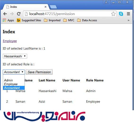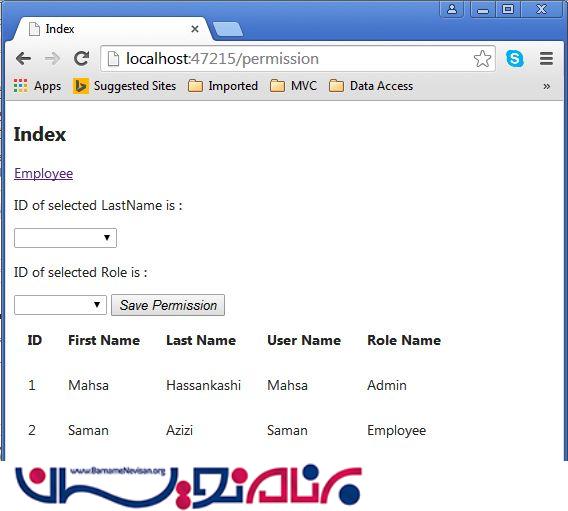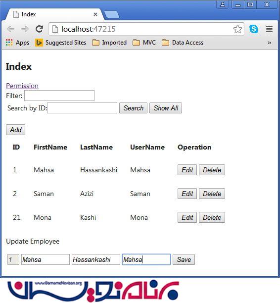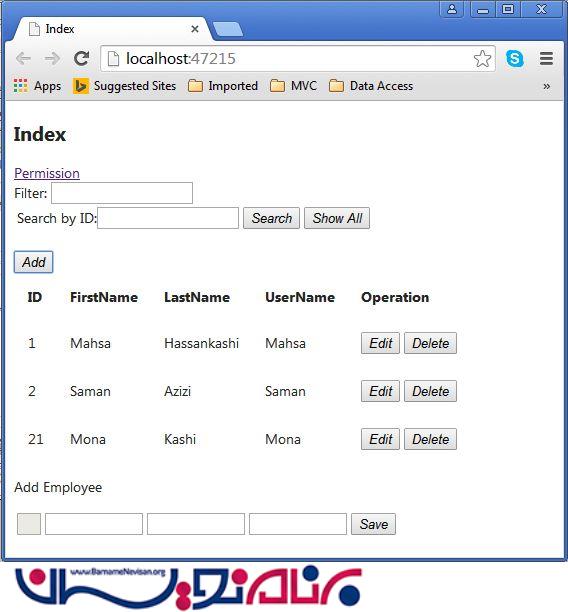 درون Service.js فرستادن داده به EmployeeController.cs :