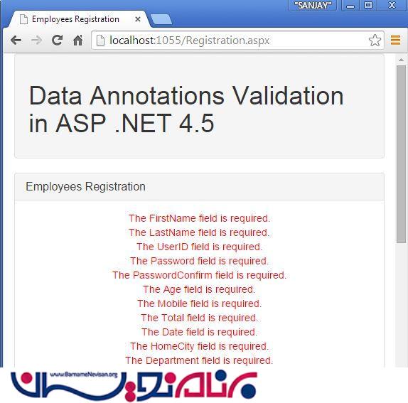اعتبار سنجی Data Annotation در Asp.Net 4.5