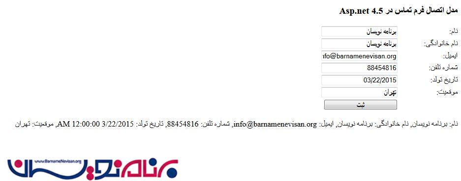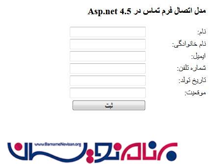 <h3>مدل اتصال فرم تماس در Asp.net 4.5</h3>