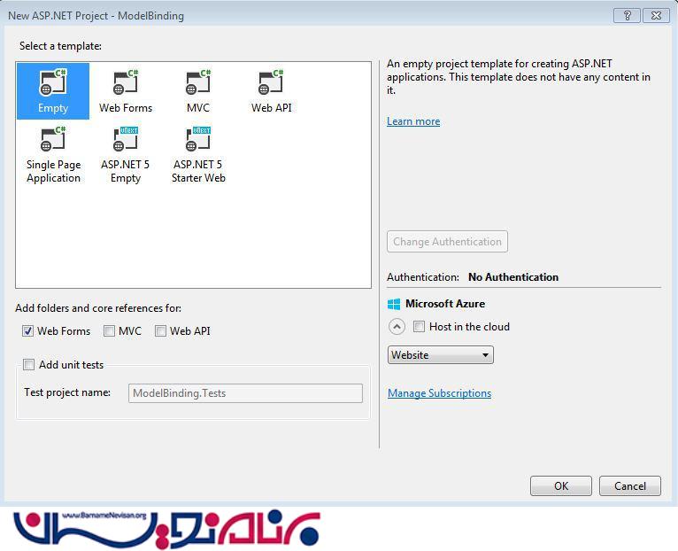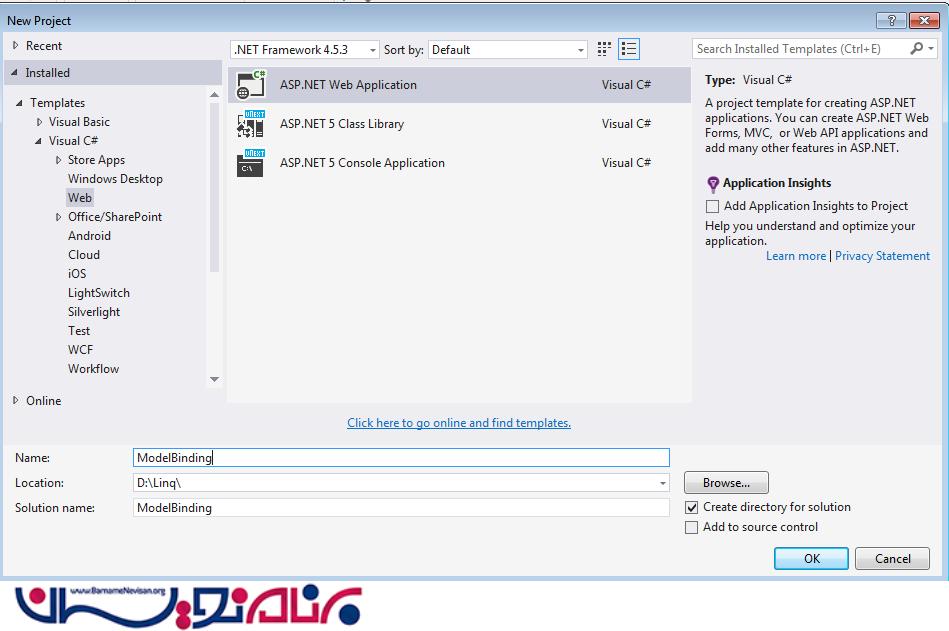 گزینه asp.net web application را انتخاب کنید