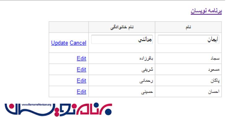 برای دکمه Update و Cancel در حالت ویرایش نیز دستورات زیر را اضافه می کنیم :