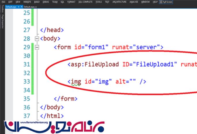 سپس یک کنترل FileUpload و یک کنترل image با نام "img" به صفحه اضافه میکنیم .