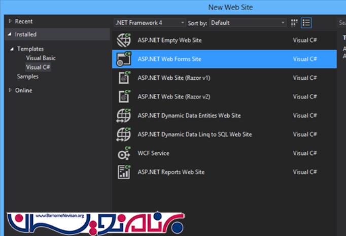 سپس یک صفحه با نام "Default.aspx" به پروژه اضافه میکنیم .