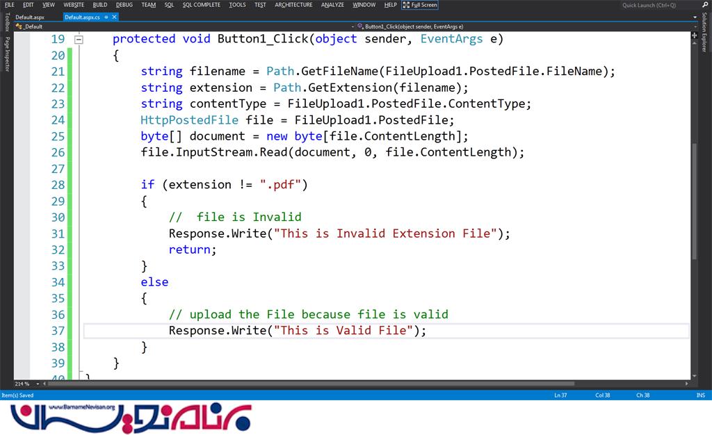 اعتبار سنجی پسوند فایل آپلود شده در Asp.net