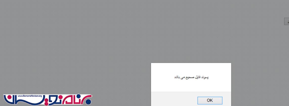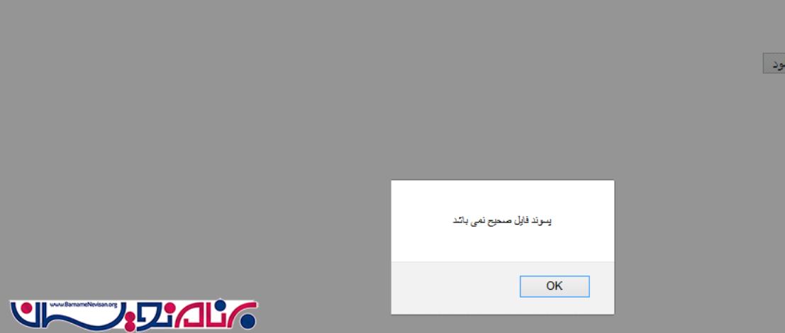 اگر پسوند فایل اشتباه باشد پیغام "پسوند فایل صحیح نمی باشد" در صفحه ظاهد می شود .