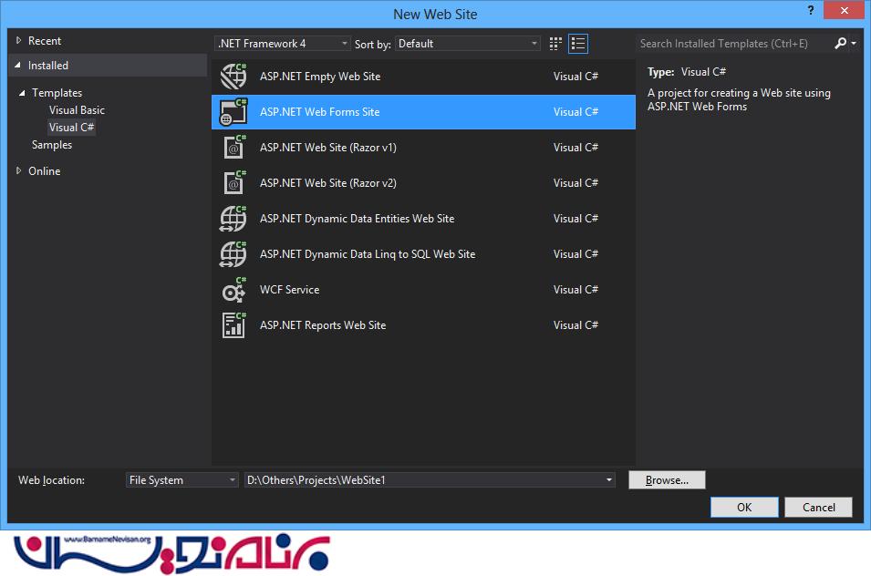 ابتدا یک وب سایت با نام "Website1" در محیط ویژوال استودیو ایجاد میکنیم .