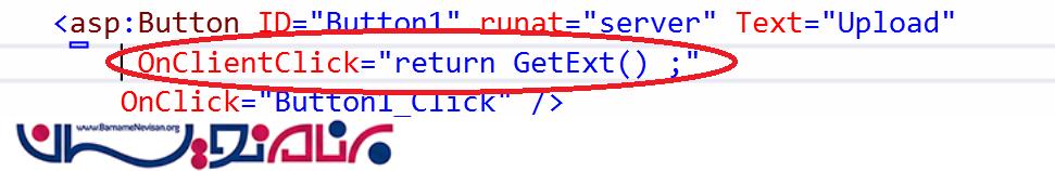 از طریق تابع زیر پسوند فایل انتخاب شده توسط کاربر را اعتبار سنجی می کنیم .برای این کار تابع زیر را در داخل تگ <Script> قرار میدهیم :