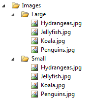 این پلاگین از دو مجموعه تصاویر استفاده می کند.1- تصویر کوچک یا تصویر اصلی که در کنترل DataList نمایش داده میشود.2-تصویر بزرگ که ورز« بزرگ همان تصاویر است که در حالت بزرگنمایی نشان داده خواهند شد زمانی که موس روی تصویر میرود پس برای انجام این عمل یک پوشه به نام Images میسازیم و درون آن دو پوشه به نام Small برای تصاویر اصلی و دیگری Large برای تصاویر یزرگ .