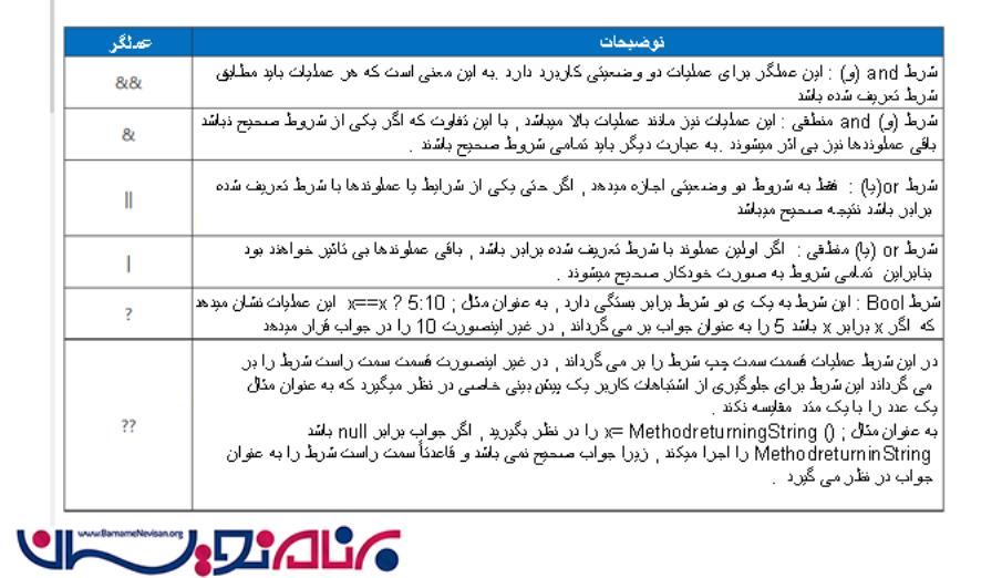 عملگرها در #C نماد محنحصر بفردی می باشند که به ما در انجام عملی خاص کمک میکنند .در زیر به چند نمونه از این عملگرها اشاره شده است :