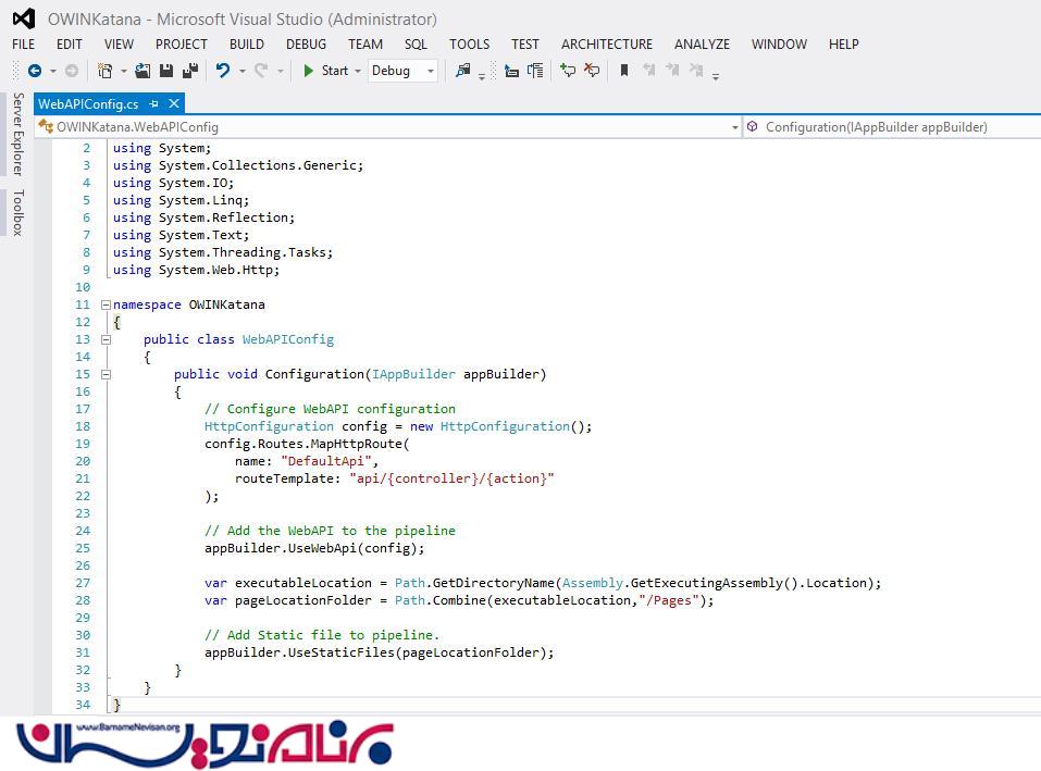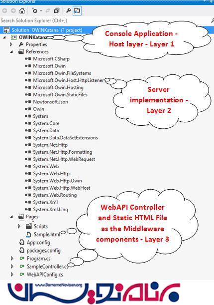 پس تا این قسمت به این نتیجه میرسیم که owin یک خصوصیلت است و katana یک پروژه منبع باز مایکروسافت می باشد که از این خصوصیات استفاده می کند.