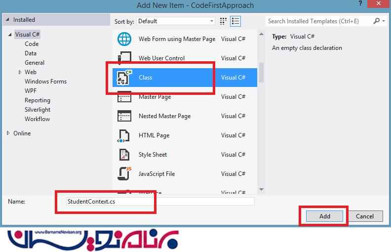 مجددا روی پوشه Model کلیک راست کرده و کلاس دیگری به نام StudentContext میسازیم :