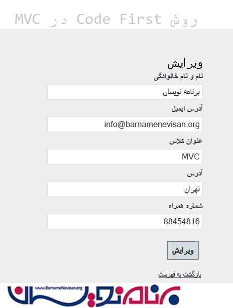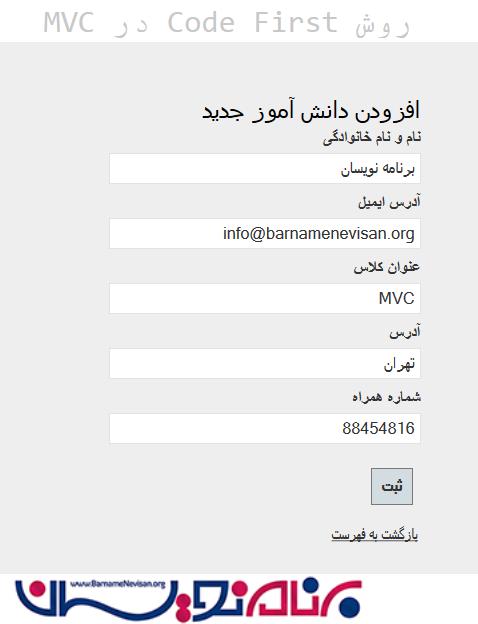 آموزش روش Code First در MVC با استفاده از Entity FrameWork