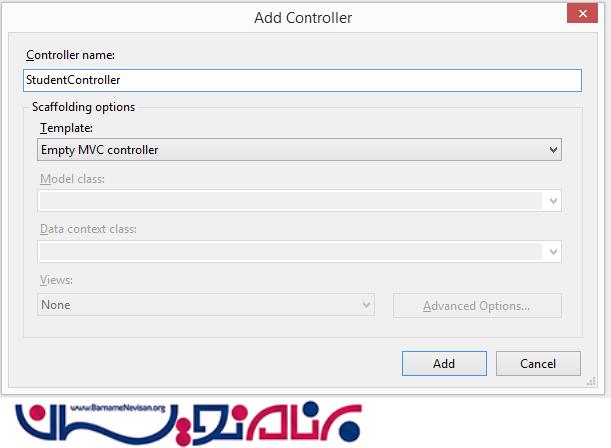 در پنجره ظاهر شده نام کنترلر را Student وارد کنید :