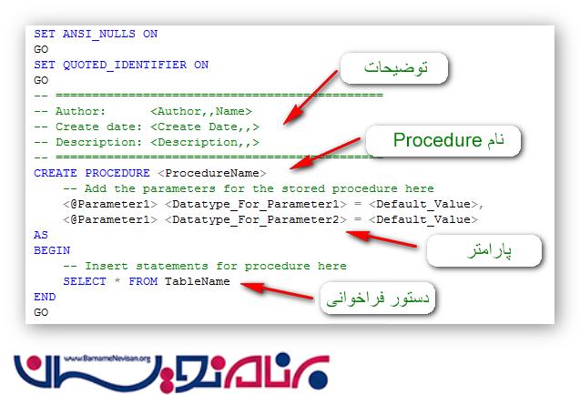 نحوه ایجاد Stored Procedure :
