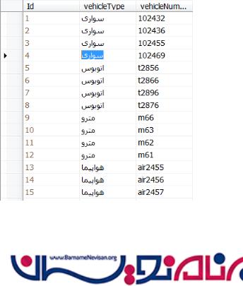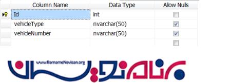 ابتدا یک جدول در پایگاه داده خود به نام VehicleMaster به شکل زیر میسازیم :