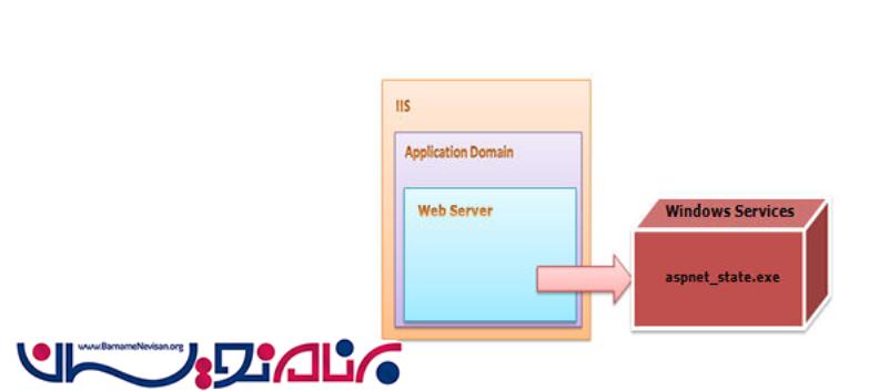 در StateServer mode , اطلاعات sesson در سرور جدا ذخیره میشود که از IIS مستقل با aspnet_state.exe استفاده میکند .این روند به عنوان Windows Service اجرا میشود .شما می توانید این سرویس را از Windows MMC یا از Command prompt اجرا کنید .