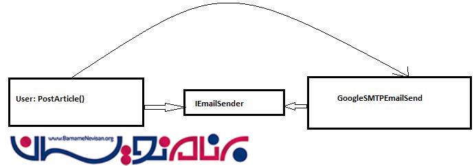 در کد بالا شما tight coupling را مشاهده میکنید درنظربگیرید که در آینده بخواهیم از SMTP دیگر مثل یاهو برای ارسال ایمیل استفاده کنیم .در اینجا نیاز داریم کد را تغییر دهیم و به همین دلیل این tight coupling است.