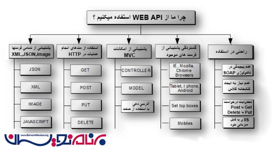 - امروزه , کاربران فقط به استفاده از مرورگرها محدود نمیشوند , آنها می خواهند نرم افزار خود را در موبایل , تبلت و دیگر دستگاه ها اجرا کنند .بنابراین WEB API برای این قطعات مناسب میباشد .