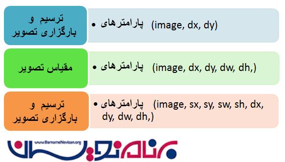 - drawimage شامل پارامترهای (image,dx,dy,dw,dh)