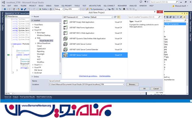 روی پروژه راست کلیک کرده و گزینه Asp.Net Server control را انتخاب میکنیم