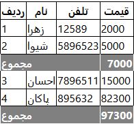 در مرحله اول باید بانک اطلاعاتی رو بسازیم و اطلاعات را در آن وارد کنیم به عنوان مثال جدول زیر را مشاهده نمایید: