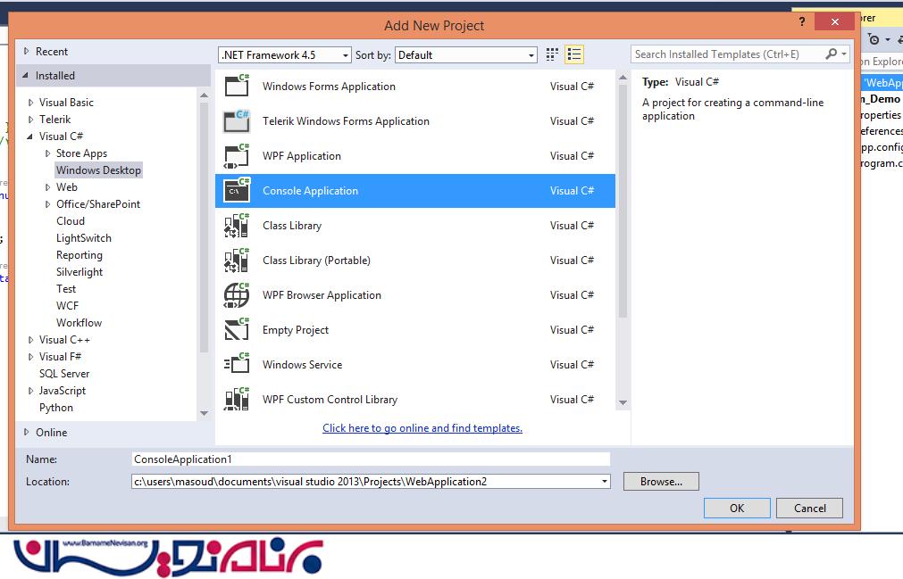 اکنون یک پروژه از نوع Console Application ایجاد میکنیم