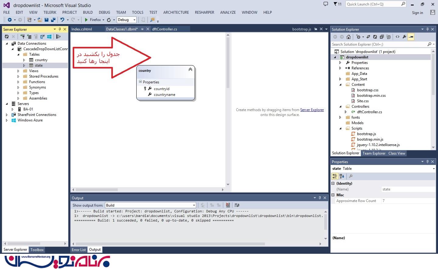 جدول را از تب Server Explorer(سمت چپ) کشیده و رها کنید.