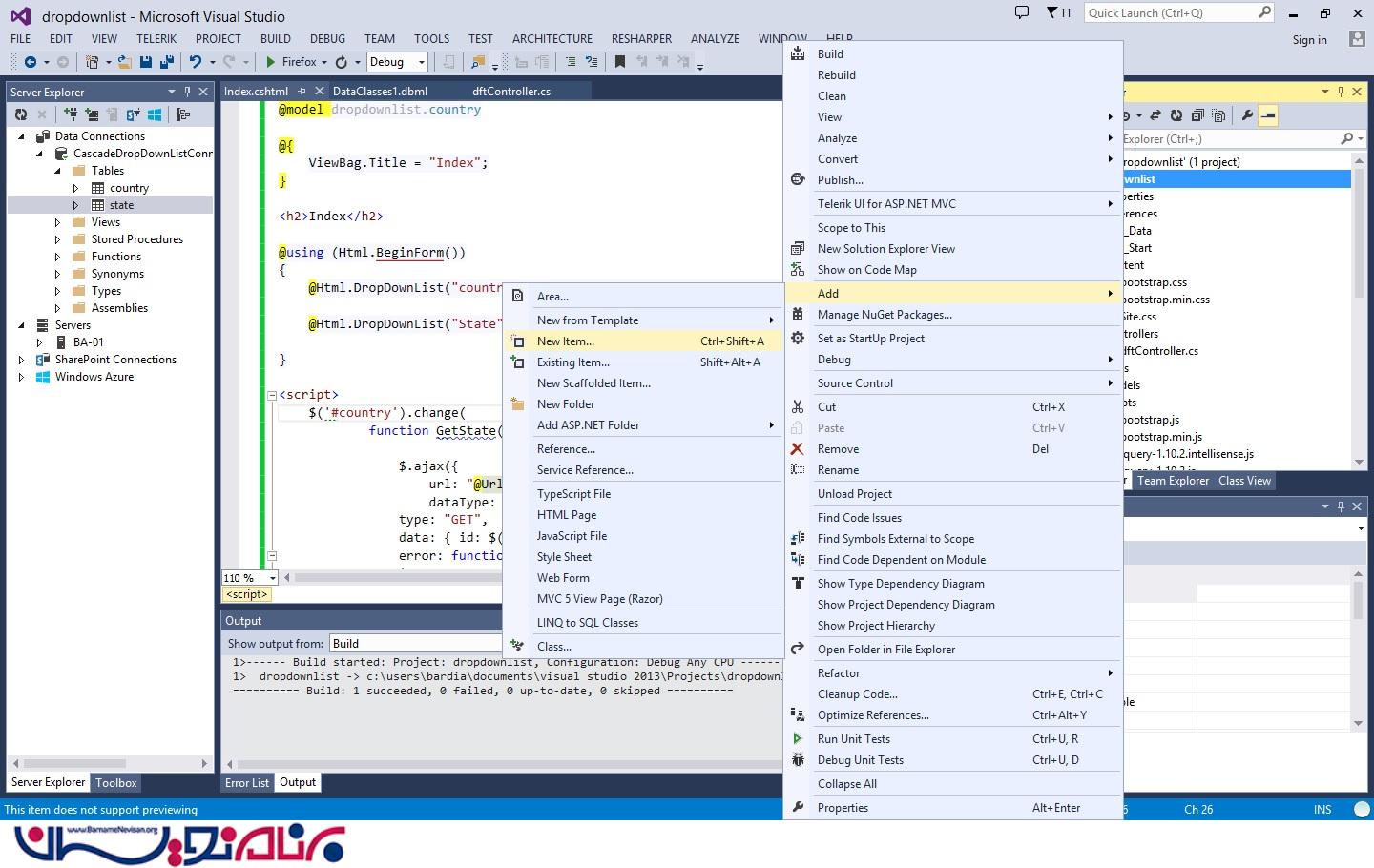 روی نام پروژه کلیک راست کرده و گزینه "Add new item" انتخاب نمایید.