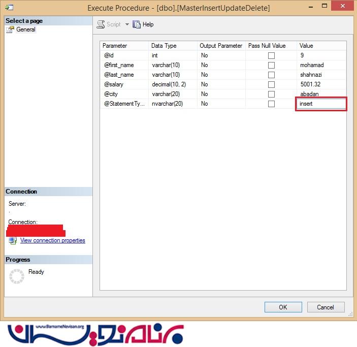 و همچنین اگر در فیلد statement type از عبارت های update و delete استفاده کنید عملیات مربوط به آنها را انجام میدهد