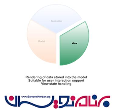 View مسئولیت ارائه ساختار نمایشی نرم افزار را به عهده دارد و با استفاده از ساختارهای HTML و اطلاعات پاس شده از طریق Controller به ارائه صفحات نمایش اقدام می نماید.