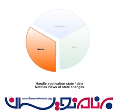 Model به پیاده سازی منطق نگهداری داده های سیستم می پردازد و مسئولیت نگهداری اطلاعات را به عهده دارد.